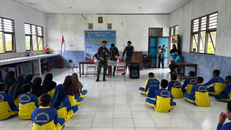 Fak-Fak, – Pos Tomage Satgas Pamtas RI-PNG Kewilayan Papua Barat Yonif 642 menyalurkan ilmu pengetahuan dan wawasan kepada murid Smp 3 Kokas Distrik Tomage Kabupaten Fak-Fak, Provinsi Papua Barat, pada hari Senin (23/9/2024).