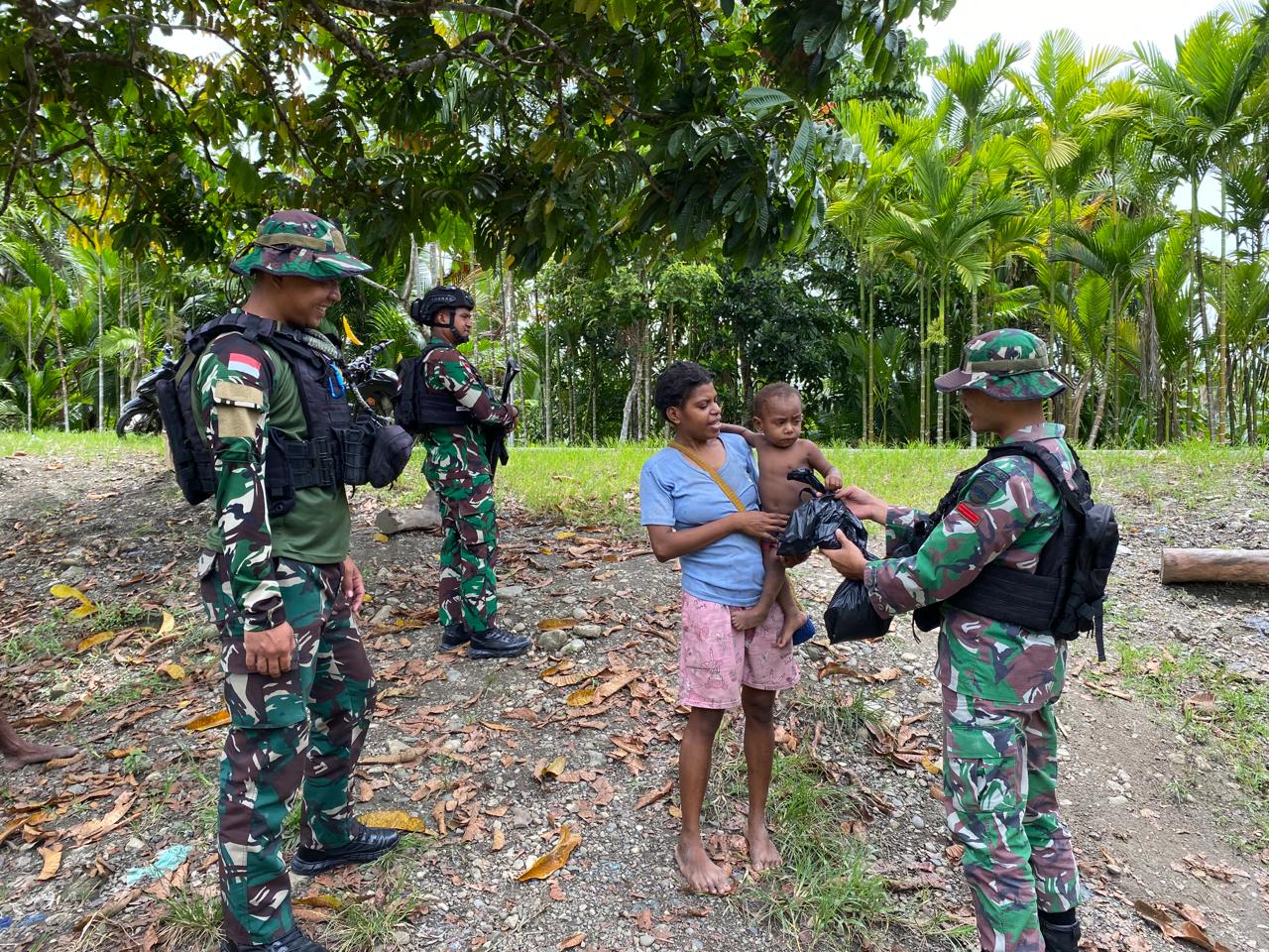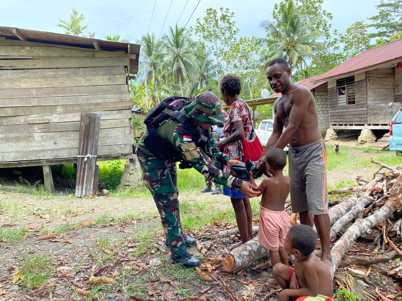 Semangat pengabdian prajurit Satgas Yonif 122/Ts di daerah penugasan terus ditunjukkan dengan karya-karya nyata untuk masyarakat pedalaman Papua, seperti halnya yang dilakukan anggota Pos KM 76 saat melaksanakan bakti sosial di Kampung Uskuwar yang berada di wilayah Distrik Manem, Kabupaten Keerom, Papua, pada Jumat (9/2/2024).