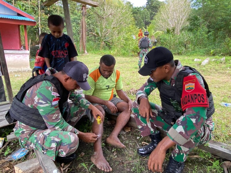Keerom, – Menjaga kesehatan adalah hal terpenting yang harus dijaga oleh setiap manusia seperti yang dilaksanakan Personel Satgas Pamtas Statis RI-PNG Yonif 122/TS Pos Kalibom melalui kegiatan pelayanan kesehatan dan pengecekan kesehatan keliling bagi masyarakat di Kampung Kalibom, Distrik Waris, kabupaten Keerom, Papua, pada Senin (26/8/2024).