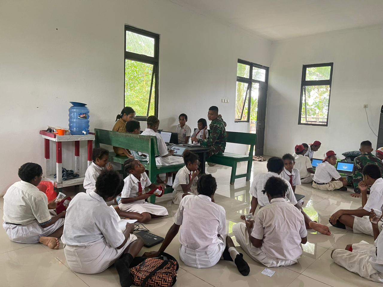 “Salah satunya pada saat sebelum ujian dimulai, pos wembi mengajari murid-murud memperoperasikan komputer supaya anak-anak mengetahui dan agar mudah untuk mengikuti ujian,” ungkap Dankipur D.