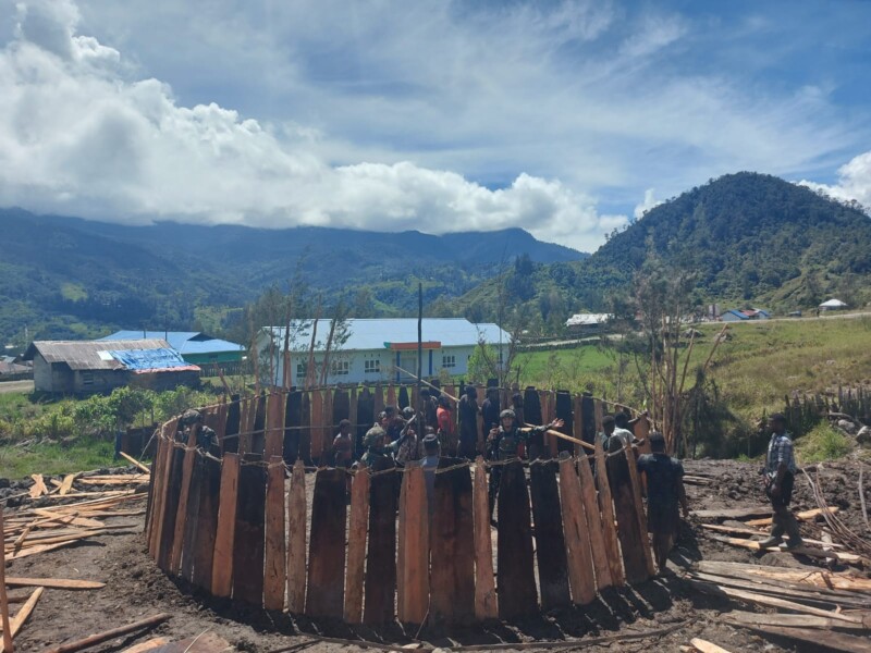 “Pembangunan Honai ini merupakan bentuk kepedulian kami TNI terhadap masyarakat sekitar dan juga untuk menjalin hubungan baik dengan masyarakat,” jelas Dan TK
