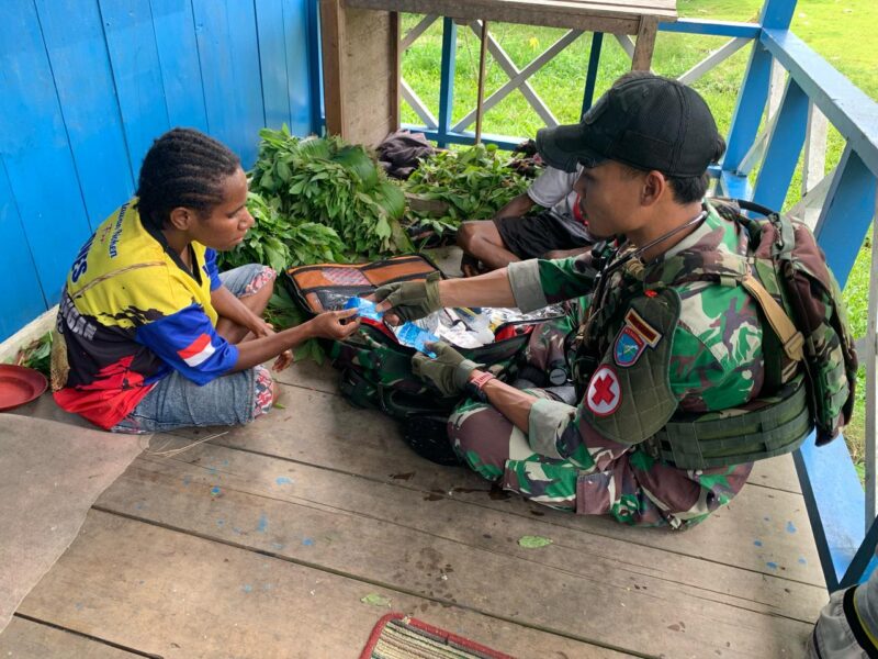 Membaramo Tengah, – Pos Kobakma Satgas Yonif 641/Bru melaksanakan pengobatan bagi masyarakat yang membutuhkan selain itu, juga sebagai bentuk kepedulian terhadap warga Distrik Kobakma, Kabupaten Membaramo Tengah, Papua Pegunungan, pada Rabu (9/4/2025).