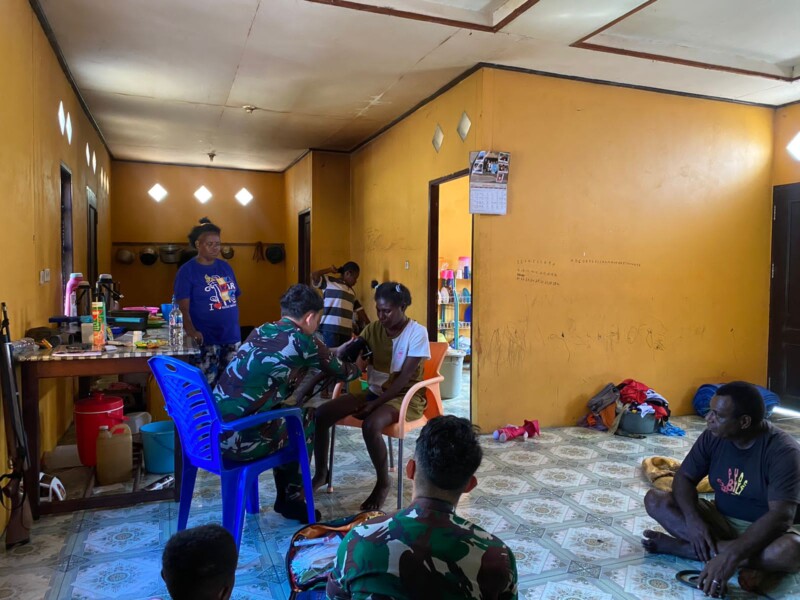 Teluk Bintuni, – Peduli kesehatan warga Kampung Jagiro, Satgas Pamtas RI-PNG Yonif 642/Kps memberikan pelayanan kesehatan (yankes) keliling kepada masyarakat di Kampung Jagiro , Distrik Moskona Selatan, Kabupaten Teluk Bintuni, Papua Barat, pada Jumat (24/1/2025).