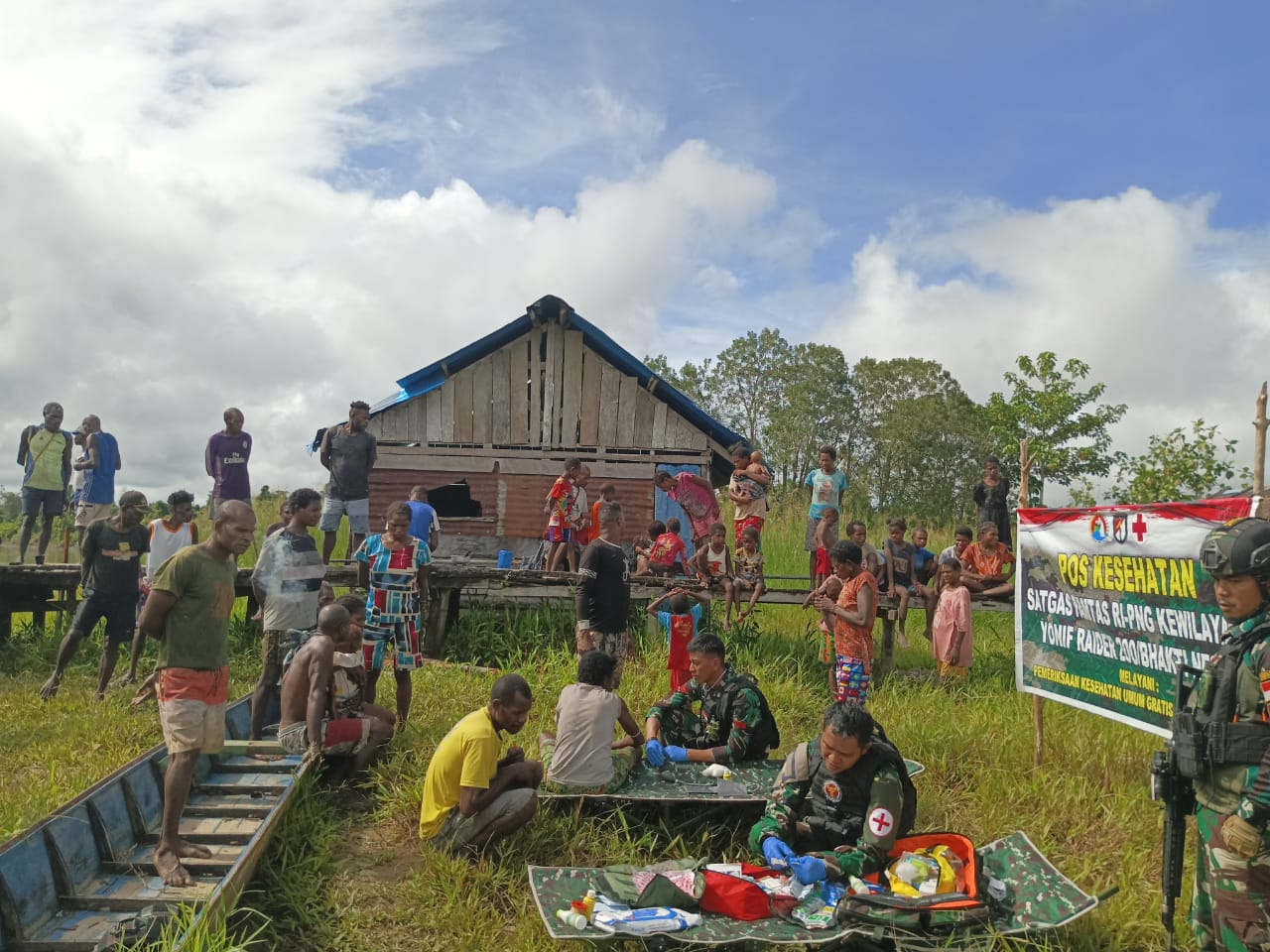 YAHUKIMO – Satgas Yonif Raider 200/BN melalui Pos Kekey terus menunjukkan bentuk kepeduliannya terhadap kesehatan masyarakat dengan memberikan pelayanan kesehatan keliling kepada masyarakat di Kampung Waiens, Distrik Kolf Braza, Kabupaten Asmat, Papua Selatan, Rabu (21/6/2023).