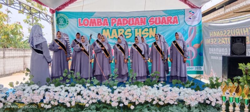 Nganjuk, – Pimpinan Anak Cabang (PAC) Fatayat NU Kecamatan Rejoso menggelar perlombaan Paduan Suara Mars, Minggu (26/10/2025). Acara berlangsung di Madrasah Diniyah Takmiliyah Desa Talang, Kecamatan Rejoso. Kegiatan digelar dalam rangkaian menyemarakkan peringatan Hari Santri Nasional (HSN) 2025.