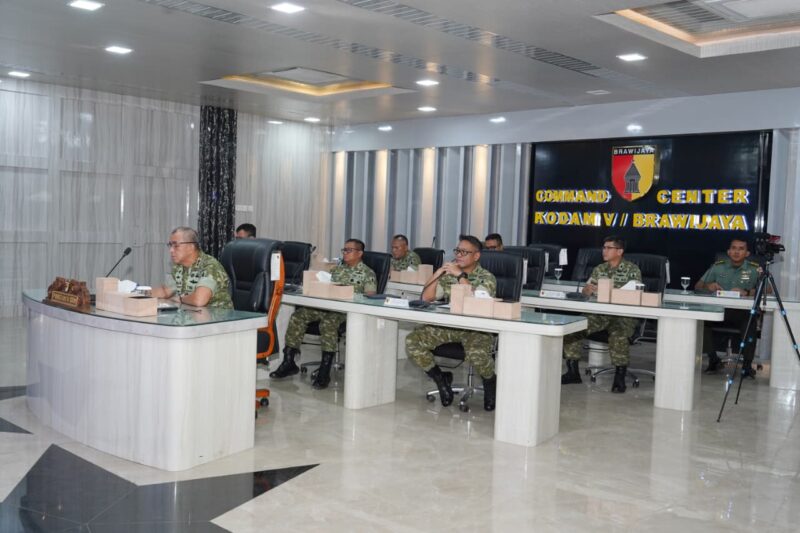 Surabaya, – Komandan Korem 083/Baladhika Jaya Kolonel Inf Kohir mengikuti rapat virtual evaluasi nasional percepatan pembangunan Koperasi Desa/Kelurahan Merah Putih (KDKMP) yang melibatkan seluruh jajaran TNI dan pemerintah daerah, Selasa (2/12/2025). Kegiatan dilaksanakan dari Ruang Bina Yudha Makodam V/Brawijaya.