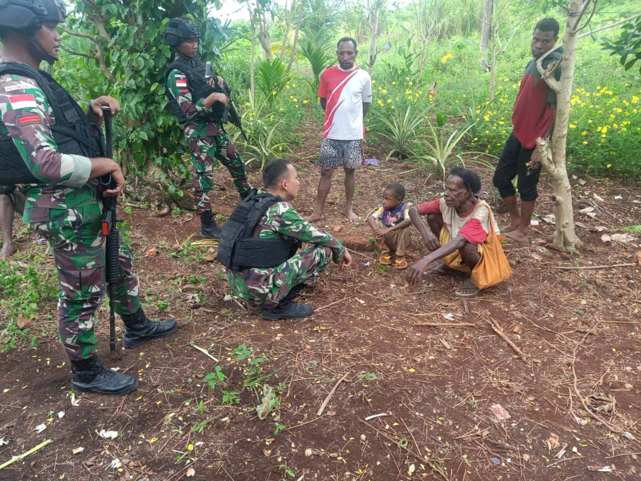 KEEROM – Satgas Pamtas Yonif 132/BS Pos Bendungan Tami melaksanakan anjangsana ke Kampung binaan dan bersilaturahmi dengan warganya yang berada di Kampung Swakarsa dan Kampung Tanah Merah, Koya Timur, Kabupaten Keerom, Papua, Selasa (11/7/2023).