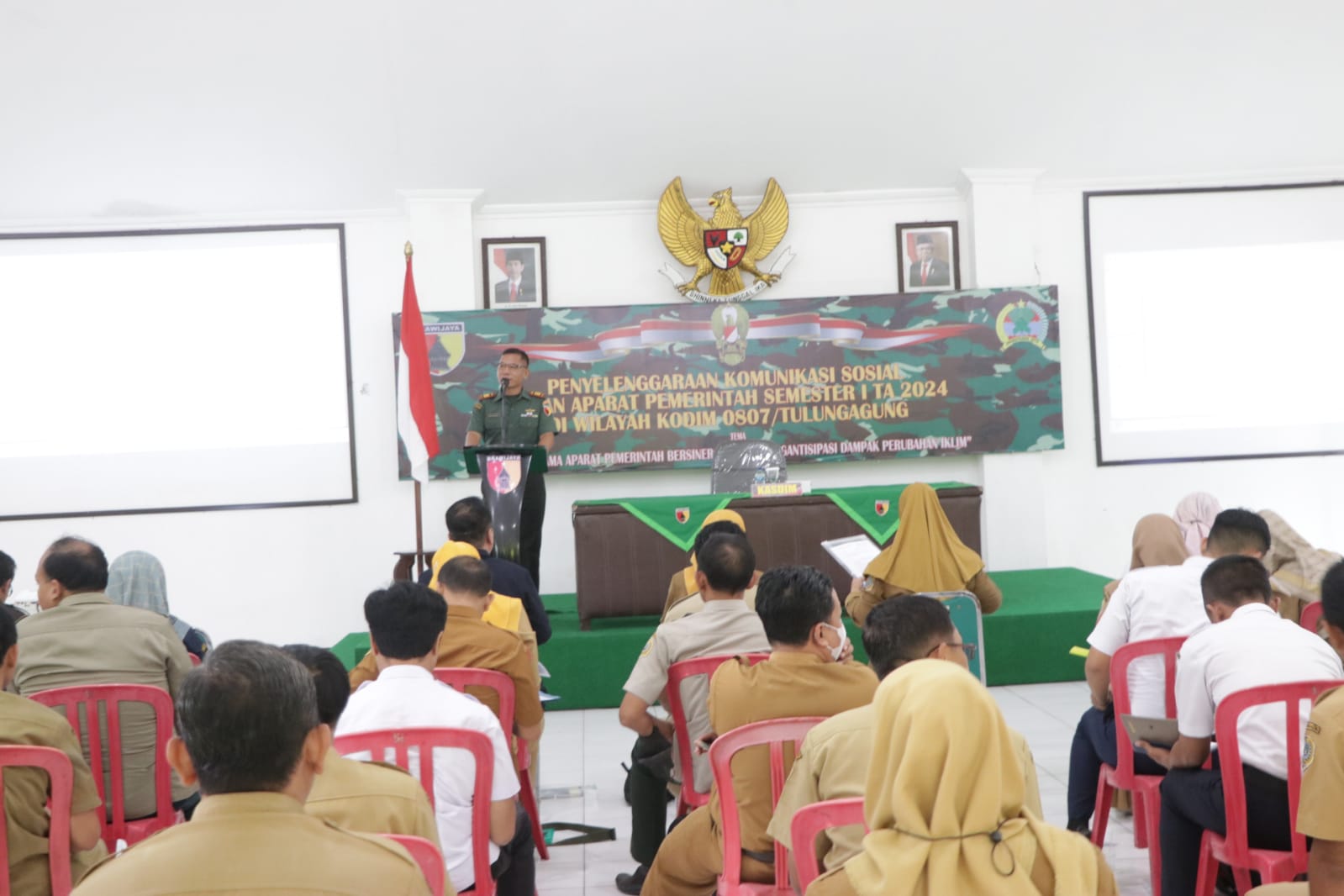 Kasdim Tulungagung, Mayor Inf Zuhal Mohammad Hasan, menyampaikan apresiasi yang tinggi kepada para Aparat Pemerintah yang telah berkenan hadir dalam kegiatan Komsos ini. Komsos dianggap sebagai sarana efektif untuk memelihara dan meningkatkan kebersamaan dalam membangun komunikasi dialogis serta saling berbagi informasi terkait situasi yang terjadi di wilayah.
