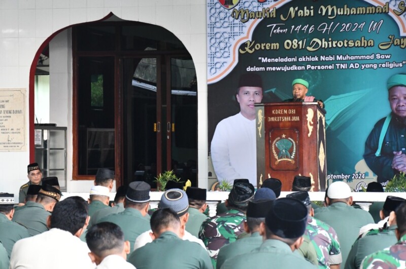 Lewat peringatan Maulid Nabi Muhammad SAW 1446 H diharapkan akan dapat meningkatkan kualitas keimanan dan ketakwaan keluarga besar Korem 081/DSJ.
