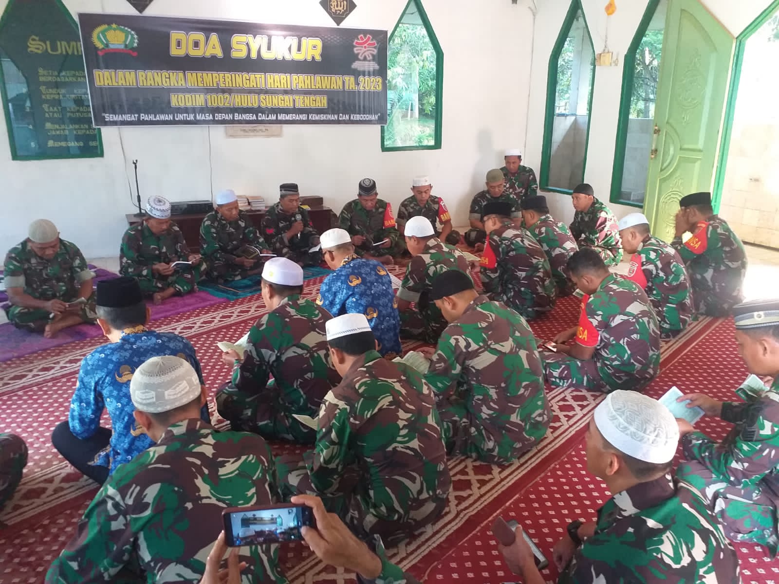 BARABAI – Sebagai wujud syukur, Kodim 1002/Hulu Sungai Tengah menggelar Doa Syukur bertempat di Musholla Al Khairul Fahmi di Jalan Telaga Padawangan, Kelurahan Barabai Timur, Kecamatan Barabai, Kabupaten Hulu Sungai Tengah (HST), pada Jumat (10/11/2023).