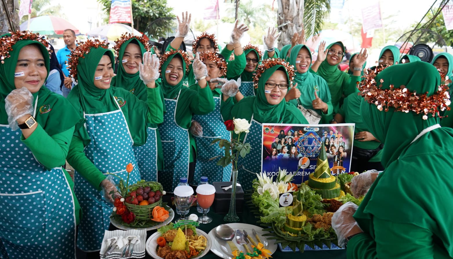 MADIUN – Persit KCK Koorcab Rem 081 PD V/Brawijaya mengikuti lomba hias nasi tumpeng dalam acara Kilau Raya MNCTV yang dilaksanakan di Alun-alun Caruban, Kabupaten Madiun, Sabtu (2/9/2023).