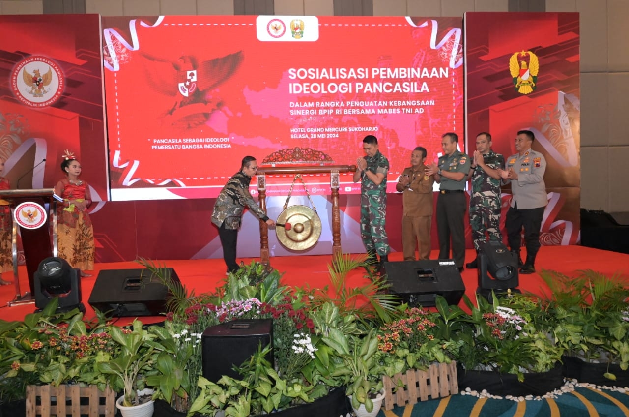 Solo, – Berangkat dari komitmen kuat untuk mempertegas Pancasila sebagai ideologi pemersatu bangsa, Badan Pembinaan Ideologi Pancasila (BPIP) RI bekerja sama dengan Tentara Nasional Indonesia Angkatan Darat (TNI AD) menggelar Seminar Kebangsaan dalam rangka Sosialisasi Penguatan Kebangsaan pada TMMD ke-120 di wilayah Kodim 0726/Sukoharjo.