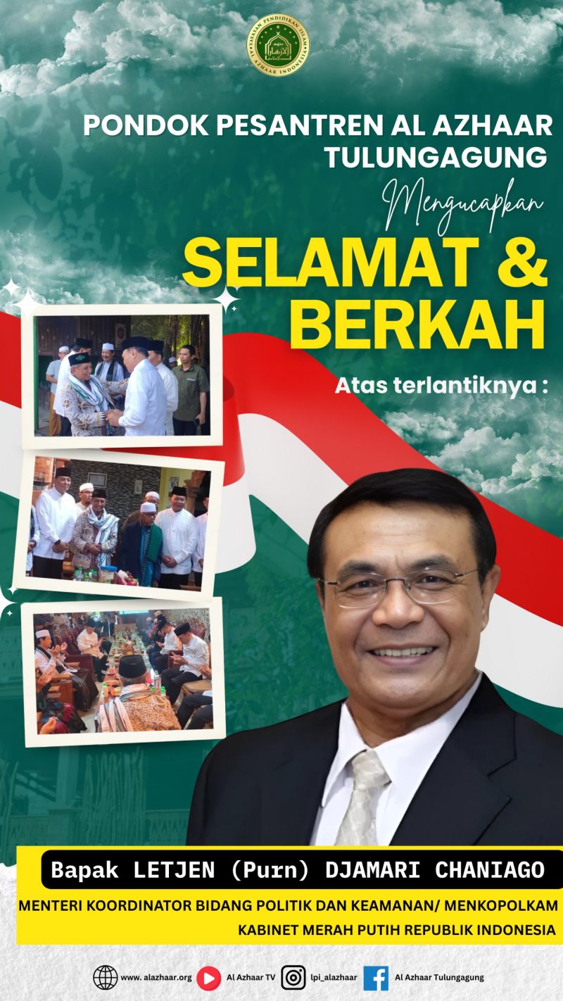 Tulungagung, – Dukungan moral dan doa mengalir kepada seorang jenderal TNI yang baru saja dilantik sebagai Menteri Koordinator Bidang Politik dan Keamanan (Menkopolkam) RI. Dari Tulungagung, Pengasuh Pondok Pesantren Al-Azhaar Kedungwaru, KH Imam Mawardi Ridlwan, menyampaikan doa khusus agar amanah tersebut dijalankan dengan ketulusan dan keberanian.