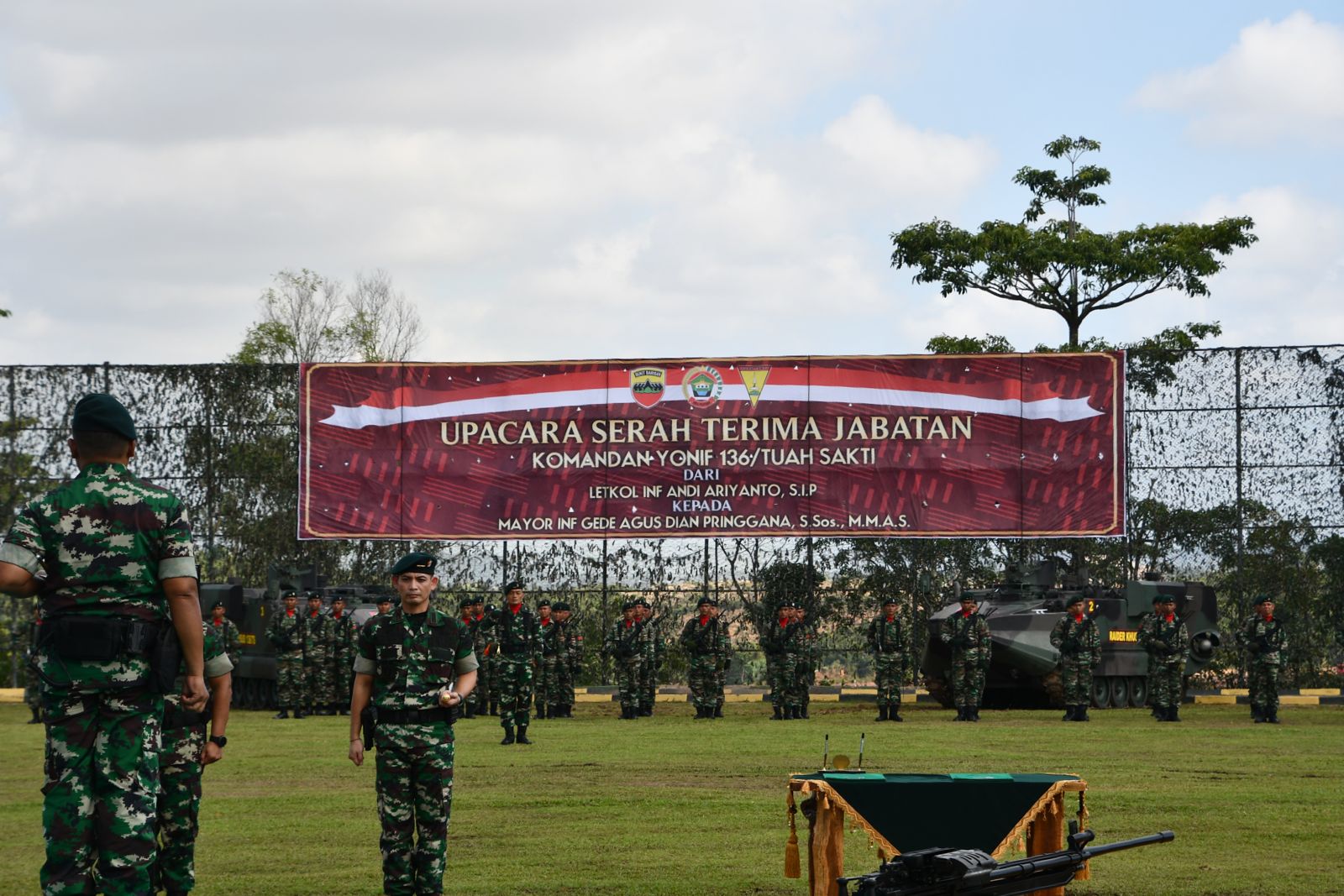 Upacara Serah terima jabatan (sertijab) Komandan Batalyon Infanteri Raider Khusus 136/TS dari pejabat lama Letkol Inf Andi Ariyanto, S.IP kepada pejabat baru Mayor Inf Gede Dian Agus Pringgana, S.sos., M.M.A.S, diselenggarakan dalam suatu upacara di lapangan Hang Tuah, Barelang Batam. Berlaku sebagai inspektur upacara Danrem 033/WP Brigjen TNI Yudi Yulistyanto, M.A.,M.Sc., serta yang bertindak sebagai Komandan upacara Wadanyonif RK 136/TS Mayor Inf Nuzul Andi Sujatmiko.