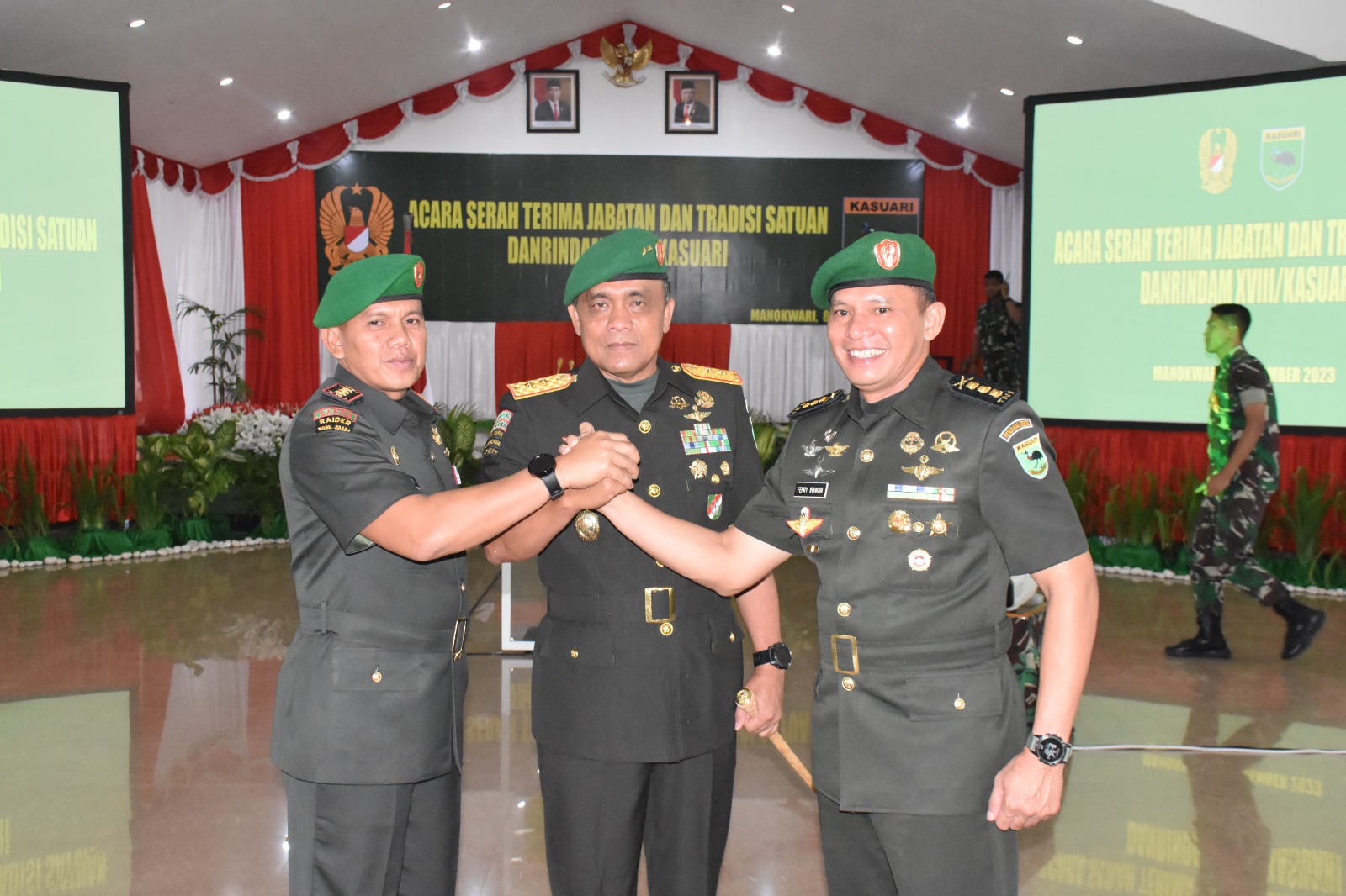 Keinginan ini disampaikan Pangdam dalam sambutannya saat memimpin langsung jalannya acara Serah Terima Jabatan (Sertijab) dan tradisi satuan Danrindam XVIII/Kasuari, yang berlangsung di Aula Makodam, Trikora, Arfai 1, Manokwari, Papua Barat, pada Jumat (8/12/2023).