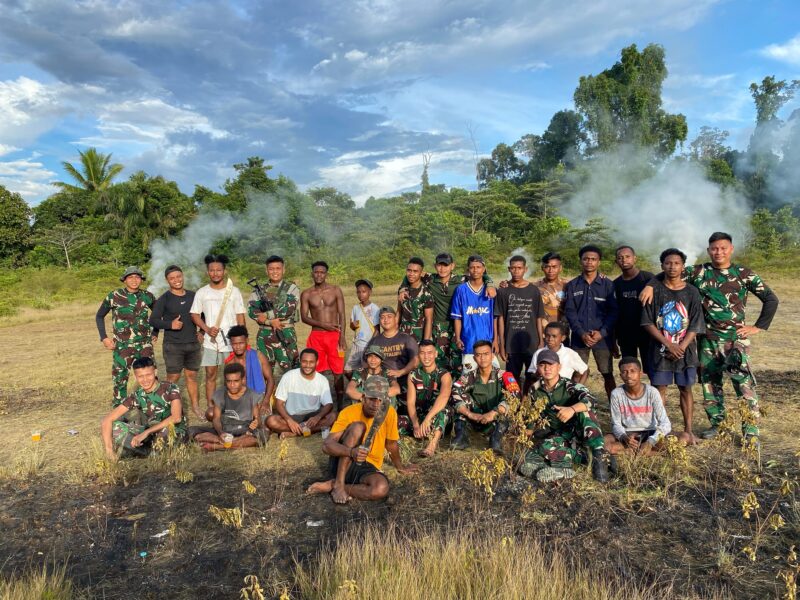Pos Aroba Yonif 642/Kps Bersama Pemuda Aroba Kerja Bakti Benahi Sarana Olahraga