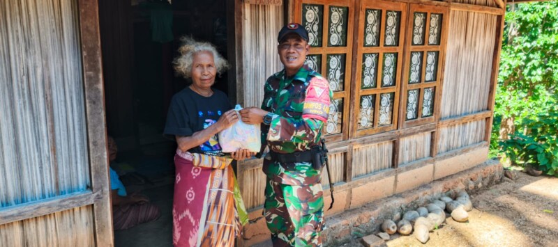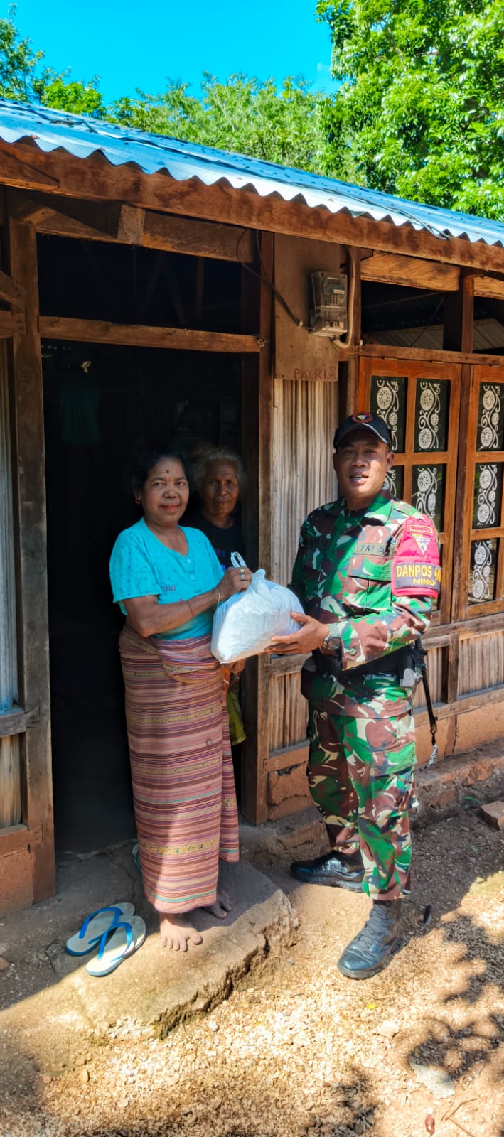 Inbate, – Pos Nino Satgas Yonkav 6/Naga Karimata berbagi kasih di perbatasan dengan memberikan Sembako kepada salah satu masyarakat yang berada di Desa Inbate, Kecamatan Bikomi Nilulat, Kabupaten Timor Tengah Utara, Provinsi Nusa Tenggara Timur, pada Senin (17/6/2024).