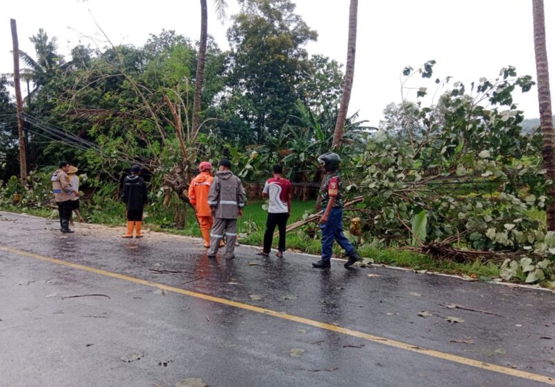 Dengan peralatan seadanya, tim gabungan bahu-membahu memotong batang dan dahan pohon waru yang melintang di jalan nasional. Koordinasi yang solid antara TNI, Polri, BPBD, dan masyarakat menjadi kunci percepatan penanganan, meskipun cuaca belum sepenuhnya bersahabat.