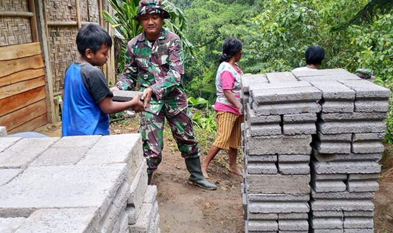 Wonogiri, Jawa Tengah – Di antara tumpukan batu bata dan adukan semen yang diangkut bergantian oleh prajurit dan warga, seorang bocah 11 tahun tampak tak mau ketinggalan. Tubuhnya kecil, namun langkahnya sigap membantu melansir material untuk pembangunan rumah orang tuanya di Desa Kembang, Kabupaten Wonogiri, Sabtu (28/2/2026).