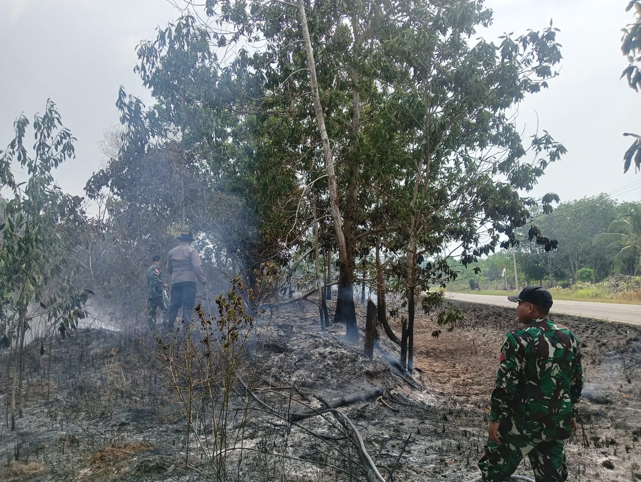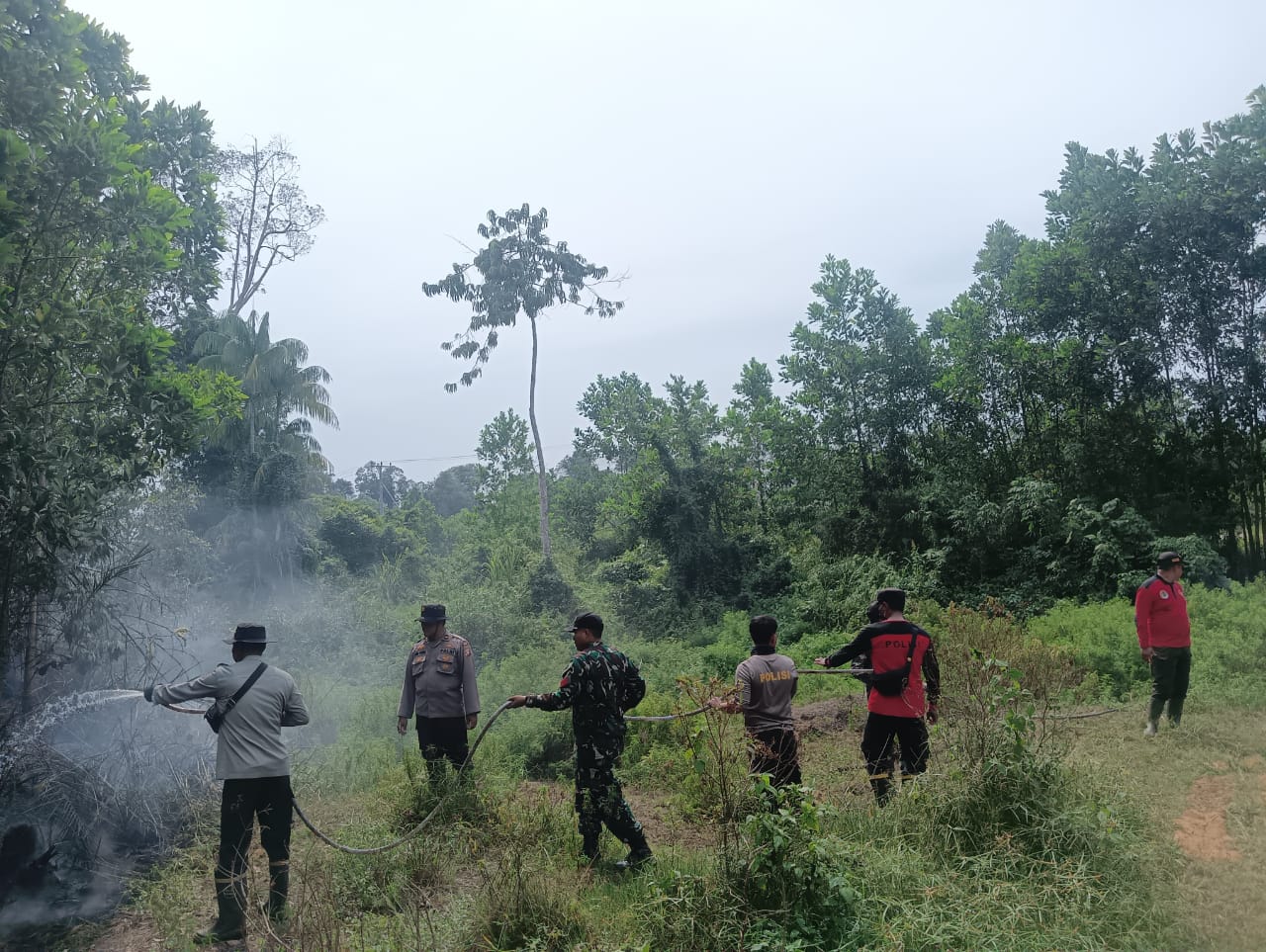 SAMBAS – Pos Gabma Temajuk Satgas Pamtas Yonarmed 16/TK DPP Letda Arm Rizal dan Wadanpos Serda Yohanes Tommi berserta Prada Engelbertus Ricky dan Praka Sandy beserta Ipda Dwi Cahyo dan Bripda Muhammad Hafiz dari bantuan Polrest Sambas melaksanakan gerak cepat pemadaman kebakaran hutan di wilayah kabupaten sambas bekerja sama dengan anggota Kepolisian sub sektor Temajuk di Dusun Camar Bulan, Desa Temajuk, Kecamatan Paloh, Kabupaten Sambas, Selasa (15/8/2023).