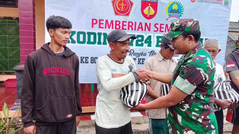 Boyolali, – Menyambut Hari Ulang Tahun ke-80 Tentara Nasional Indonesia (TNI) sekaligus HUT ke-75 Kodam IV/Diponegoro, Kodim 0724/Boyolali menggelar Karya Bakti pembersihan tempat ibadah serta bakti sosial pembagian sembako di Desa Ngadirojo, Kecamatan Gladaksari, Kabupaten Boyolali, Sabtu (20/9/2025).