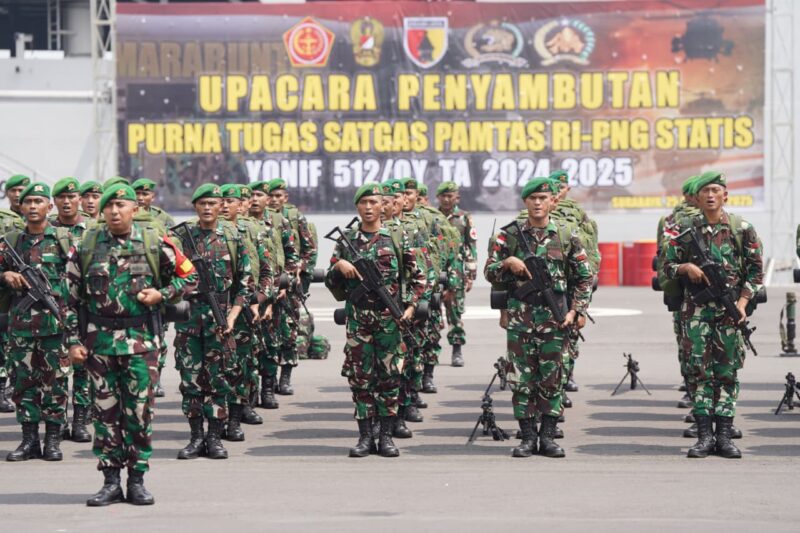 Surabaya, – Kasdam V/Brawijaya, Brigjen TNI Zainul Bahar, S.H, M.Si, menyambut kedatangan personel Satgas Yonif 512/QY yang tiba di Koarmada II, Ujung, Surabaya, Jawa Timur pada Sabtu (25/10/2025).