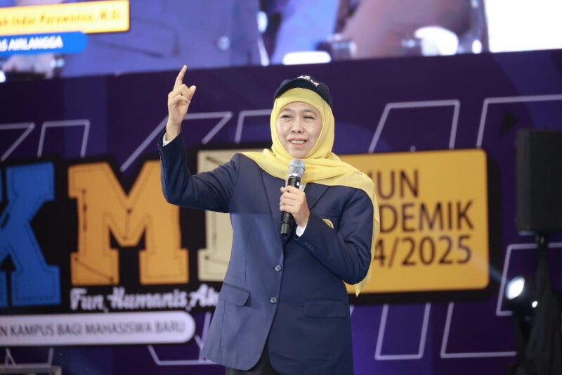 Surabaya, – Ketua Umum Ikatan Alumni Universitas Airlangga (Ketum IKA Unair) Khofifah Indar Parawansa turut memeriahkan perhelatan Pengenalan Kehidupan Kampus bagi Mahasiswa Baru (PKKMB) Unair 2024. Khofifah hadir untuk memberikan sambutan serta motivasi bagi para Ksatria Airlangga.
