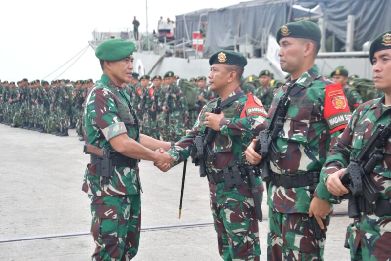 Balikpapan, – Panglima Komando Daerah Militer (Kodam) VI/Mulawarman, Mayjen TNI Tri Budi Utomo, memimpin upacara penerimaan Satuan Tugas Pengamanan Perbatasan RI-Malaysia Yonarmed 11 Kostrad di Pelabuhan Semayang Balikpapan Kalimantan Timur. Upacara ini merupakan langkah awal bagi Satgas Pamtas dalam menjalankan tugasnya menjaga perbatasan RI-Malaysia, khususnya di wilayah Kalimantan Utara. Balikpapan, pada Selasa (20/8/2024).