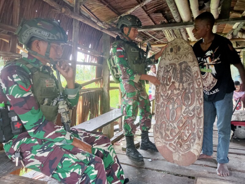 Dalam penekanannya kepada para Prajurit TNI, Komandan Satgas Yonif 503 Kostrad, Letkol Inf Gurbasa Samosir, menyampaikan pentingnya perhatian Satgas kepada kebutuhan dasar masyarakat di sekitar Pos. Oleh sebab itu, pada hari Selasa tersebut, para Prajurit TNI memanfaatkan patroli pengamanan wilayah melalui interaksi dan komunikasi dengan para warga Kampung Dim yang berprofesi sebagai pengerajin senjata tradisional khas Papua. Interaksi tersebut terjadi ketika Tim Patroli Satgas Yonif 503 Kostrad melintasi lokasi kerajinan senjata tradisional di Kampung Dim.