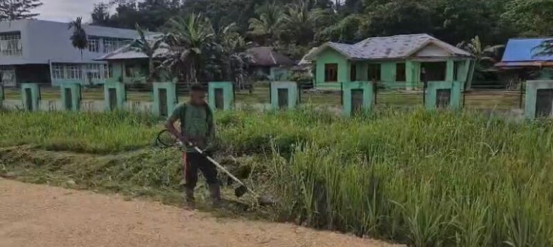 Kegiatan ini menyasar poros jalan utama kampung serta sejumlah fasilitas umum yang digunakan masyarakat sehari-hari. Sejak pagi, prajurit TNI dan warga bekerja bersama membersihkan halaman rumah, tempat ibadah, serta area publik lainnya.