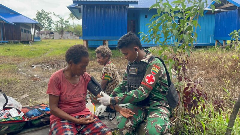 Dipimpin Danpos Koroway Letda Inf Mahyaruddin Salim, para personel Satgas menggelar bakti sosial di sela patroli rutin mereka. Kehadiran tenaga medis dalam rombongan itu menjadi kabar yang dinanti warga, mengingat puskesmas terdekat berada jauh dan sulit diakses, terutama saat cuaca tak bersahabat.