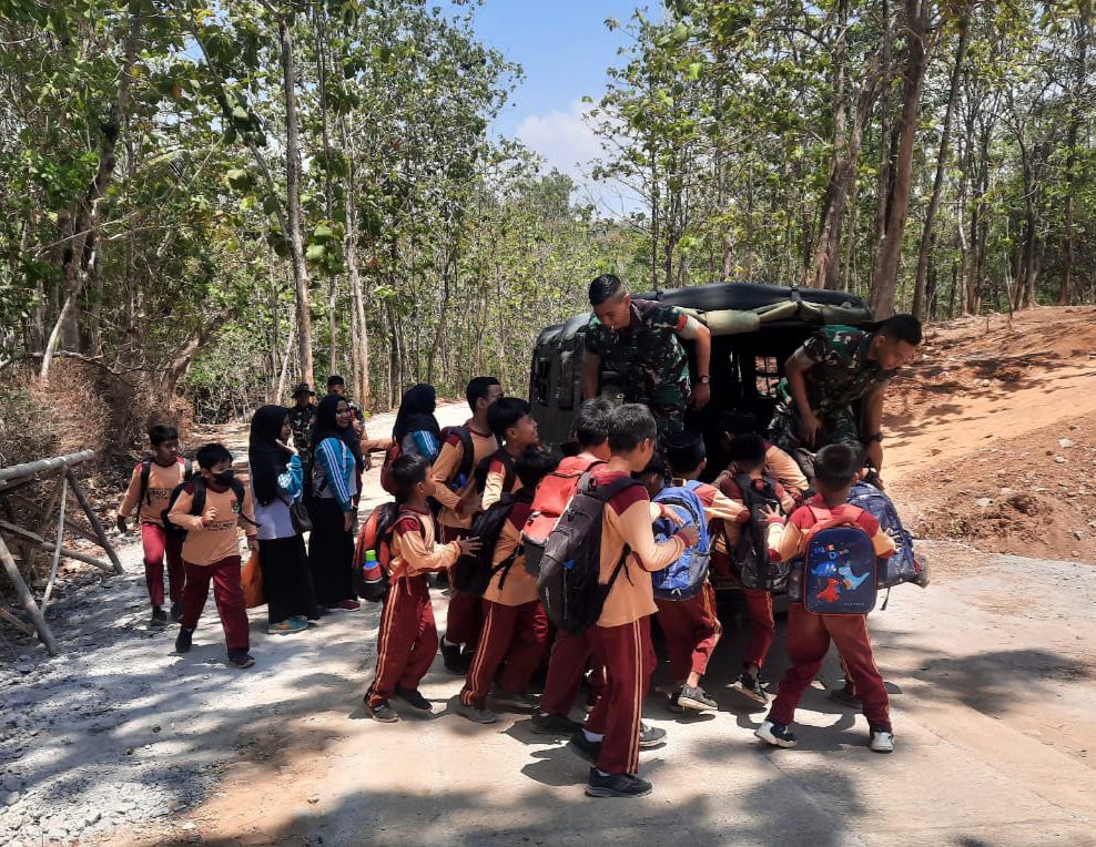 Namun seakan mendapatkan bonus dari Koramil 14/Jatisrono, siswa-siswi sejumlah 98 anak dengan didampingi Kepala Sekolah Suwarni beserta Guru Pendamping SDIT Ibnu Sina, mereka diajak menuju ke lokasi TNI Manunggal Membangun Desa(TMMD) yang kebetulan juga berada di Kecamatan Jatisrono.