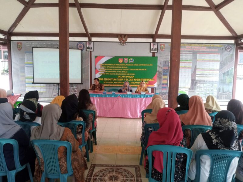 Bersinergi dengan Dinas Koperasi dan UKM Kabupaten Boyolali, Satgas TMMD menggelar penyuluhan pengembangan Usaha Mikro Kecil dan Menengah (UMKM) di Aula Balai Desa Candi, Kecamatan Ampel, Jumat (24/10/2025).