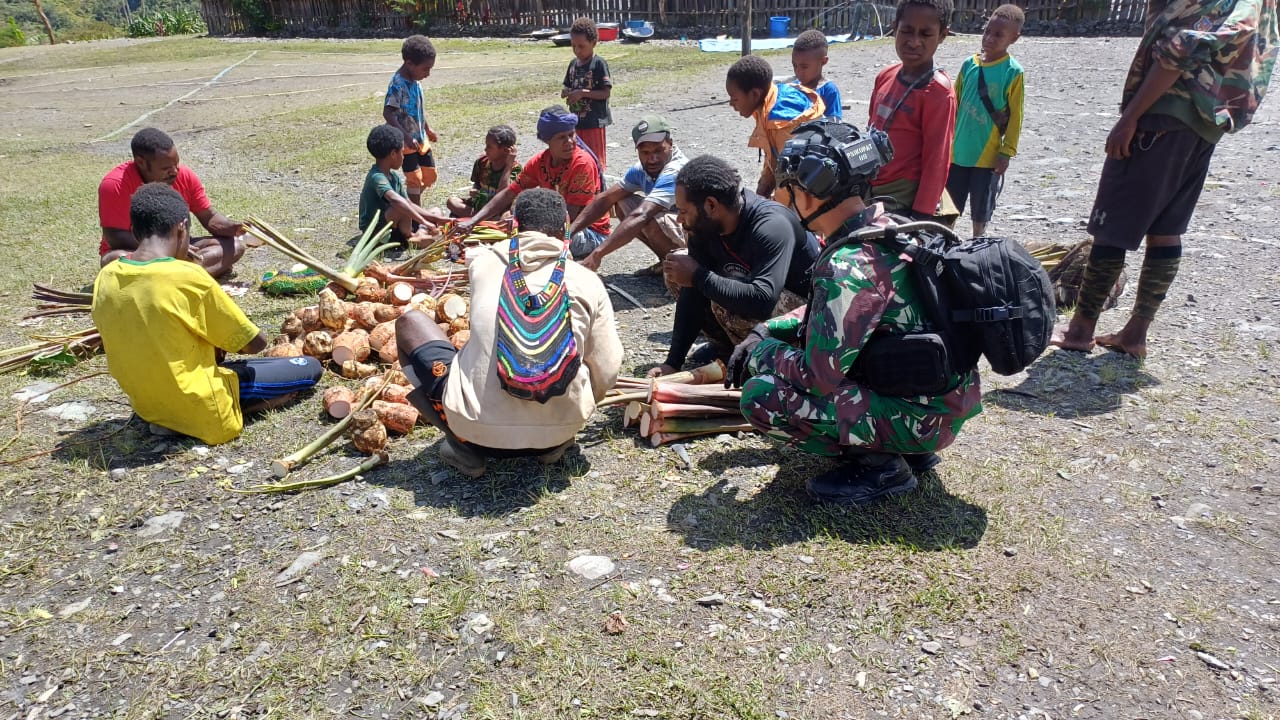 PUNCAK JAYA – Sebagai wujud kepedulian atas kedukaan yang dialami oleh masyarakat, Satgas Yonif 115/ML dari Pos Wuyuneri hadir dalam acara bakar batu di rumah keluarga Gumanggup Enumbi yang berada di Kampung Wuyuneri, Distrik Mulia, Kabupaten Puncak Jaya, pada Jumat (13/10/2023).