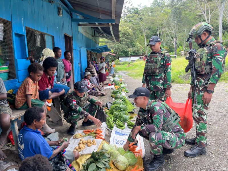 Membramo Tengah, – Mama-mama Papua bahagia. Ternyata alasannya sangat sederhana. Prajurit TNI dari Pos Kelila Satgas Yonif 641/Bru memborong hasil tani yang mereka jual di Pasar Distrik kelila, Kabupaten Membramo Tengah, Provinsi Papua Pegunungan. Hal itu terjadi hari ini, Jumat (4/4/2025).