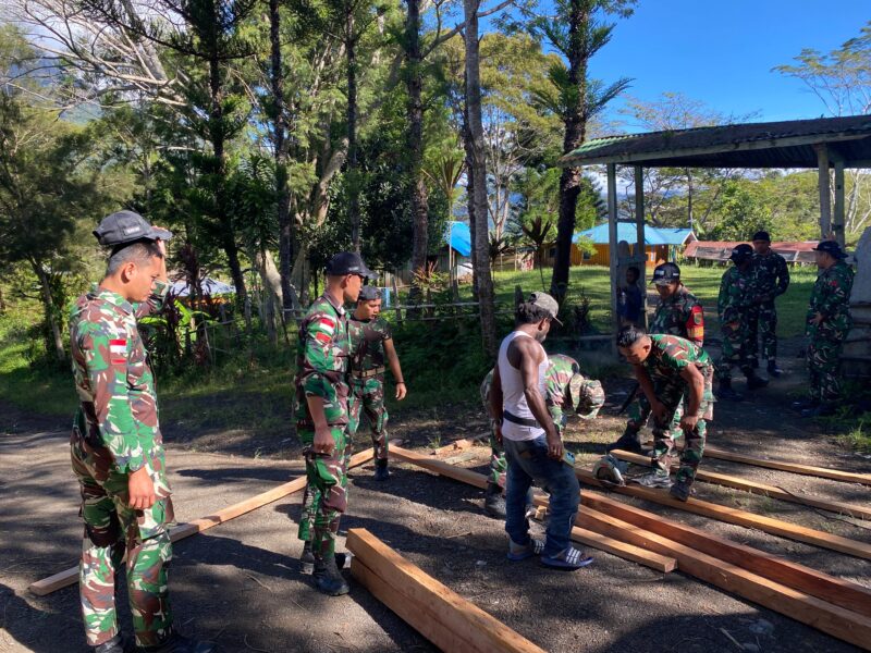Membramo Tengah, – Di tengah sunyinya Pegunungan Papua, semangat gotong royong kembali bersinar. Personel Satgas Yonif 641/Bru Pos Kelila bersama anggota Koramil dan masyarakat bahu-membahu memperbaiki gerbang masuk Desa Timeria, Distrik Kelila, Kabupaten Membramo Tengah, yang selama ini rusak dan mengganggu aktivitas warga, pada Senin (26/5/2025).