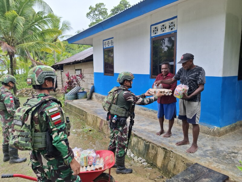Satgas Yonif 642/Kps Bagikan Sembako ke Rumah-Rumah Warga Warwasi, Ternyata Ini Tujuannya