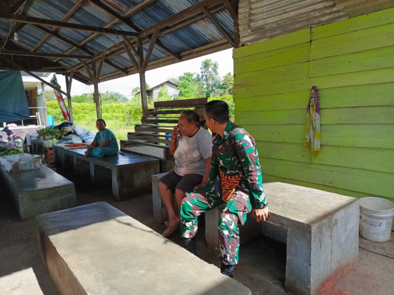 Teluk Bintuni, – Pos Kotis Meyado Yonif 642/Kps Satgas Pamtas RI-PNG Kewilayahan Papua Barat Sertu Rhoki Rakawili selaku Dansi Siter bersama anggota pos meyado anjangsana di pasar Kampung Vascodaneem, Distrik Melado Kabupaten Teluk Bintuni, Provinsi Papua Barat, pada Jumat (20/9/2024).