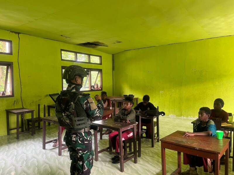 “Anggota Pos Teluk Etna membantu dengan ikhlas sebagai tenaga pendidik, Untuk membantu guru memberikan ilmu pengetahuan dan wawasan kewarganegaraan kepada peserta didik, menjadi harapan bagi semua guru dan masyarakat yang berada di sekitar,” ujar Serda Rizki Aprianto.