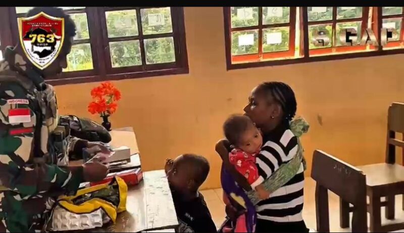 Bamusbama, Papua Barat Daya – Kepedulian terhadap kesehatan masyarakat pedalaman kembali ditunjukkan Satgas Pamtas RI-PNG Yonif 763/SBA. Prajurit Pos Bamusbama menggelar layanan kesehatan gratis bagi murid dan guru SD Bamuswayman, Distrik Bamusbama, hari ini, Selasa (25/11/2025).