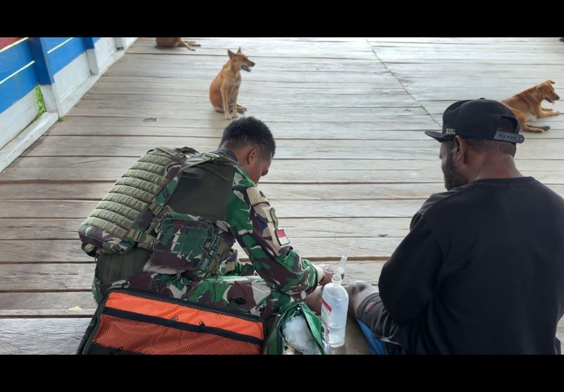 Maybrat, Papua Barat Daya – Satuan Tugas (Satgas) Yonif 763/South Borneo Army (SBA) Pos Konja memberikan pelayanan kesehatan langsung dari rumah ke rumah bagi warga Kampung Konja, Kabupaten Maybrat, Papua Barat Daya, Jumat (13/3/2026). Kegiatan ini dilakukan untuk membantu masyarakat yang memiliki keterbatasan akses terhadap layanan kesehatan.