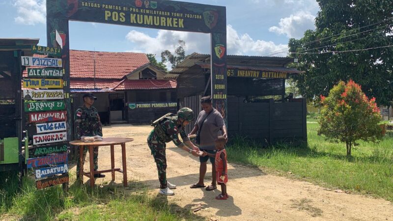 Maybrat, – Satgas Pamtas RI-PNG Kewilayahan Yonif 763/Satya Bhakti Anoraga kembali menyapa warga perbatasan dengan kepedulian. Melalui kegiatan “Jumat Berkah”, para prajurit di Pos Kumurkek, Kabupaten Maybrat, Papua Barat Daya, membagikan makanan siap santap dan paket kebutuhan harian kepada warga sekitar, Jumat (21/11/2025).