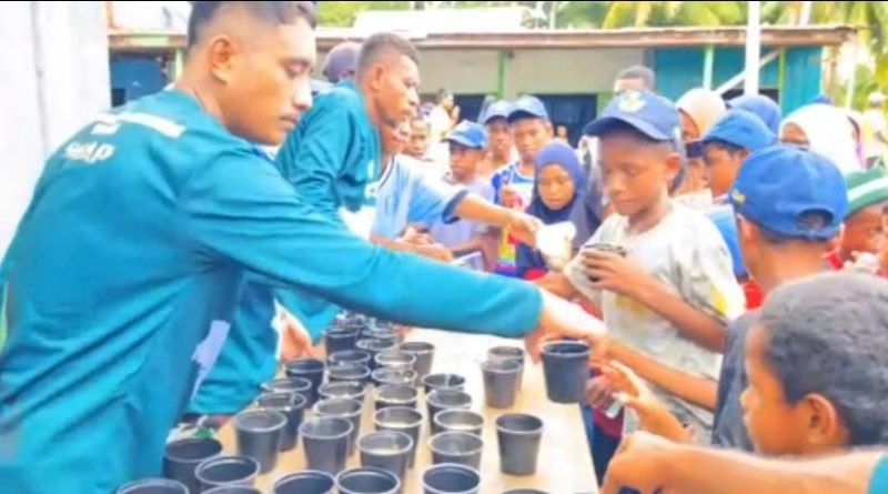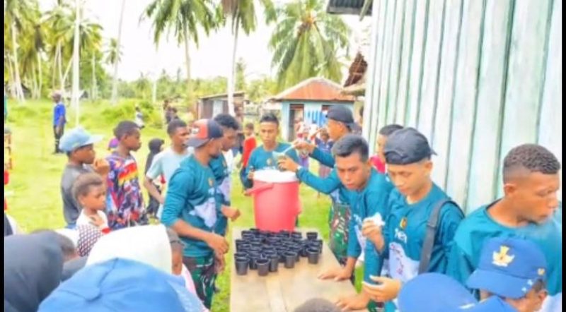 Dalam kegiatan tersebut, prajurit Satgas membagikan bubur kepada warga. Meski sederhana, kegiatan ini menjadi sarana membangun kedekatan dan mempererat hubungan antara prajurit TNI dan masyarakat setempat.