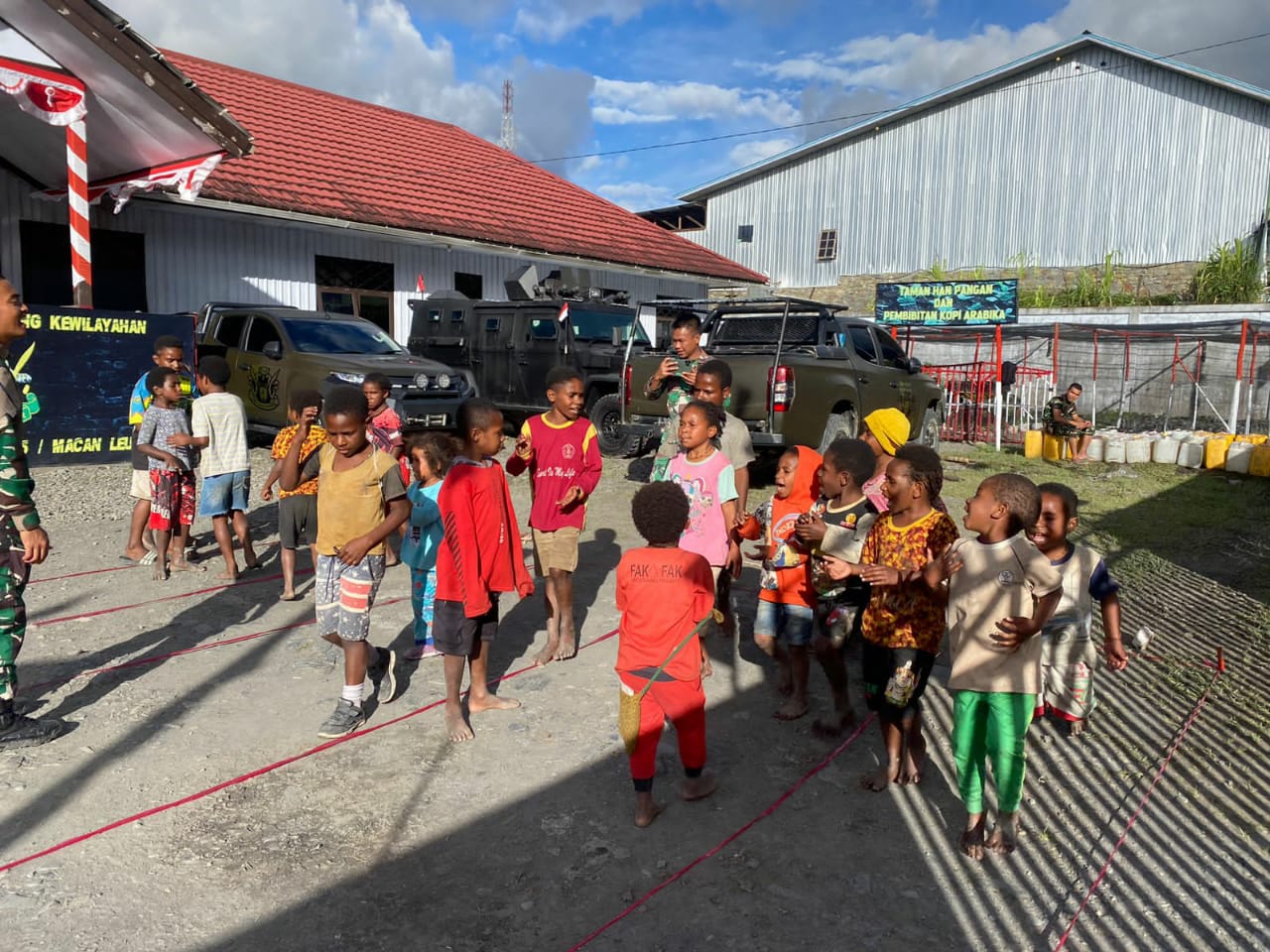 Pos Pruleme yang dipimpin oleh Danpos Lettu Inf Hilmy Muhammad Fauzan, S.Tr (Han) dengan penuh semangat mengajak anak-anak yang tinggal di sekitar Pos untuk datang ke Sanggar Belajar.