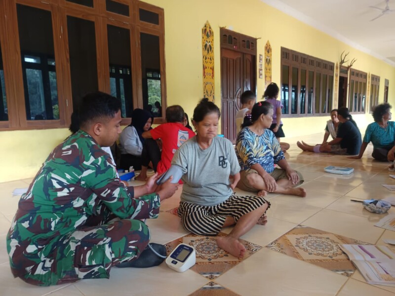 Kapuas Hulu, – Dalam upaya deteksi dini penyakit tidak menular, Pos Mentari Satgas Pamtas RI-Malaysia turut membantu Puskesmas Sebindang dalam menggelar Pos Pembinaan Terpadu (Posbindu) untuk pemeriksaan kesehatan gratis sebagai pencegahan Penyakit Tidak Menular (PTM) di Balai desa Sebindang dan Rumah panjang Sebindang, Kecamatan Badau, Kabupaten Kapuas Hulu, pada Senin (17/2/2025).