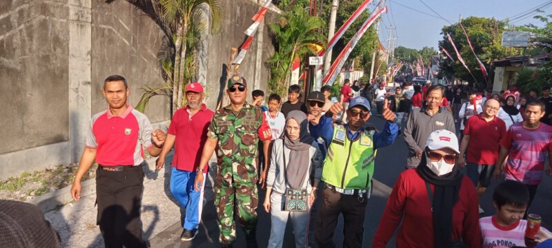 Surakarta, – Dalam rangka menyambut hari Ulang Tahun kemerdekaan Republik Indonesia ke-79, Babinsa Kelurahan Tegalharjo Koramil 04/Jebres Kodim Surakarta Sertu Joko Riyanto dan Koptu Sanda Arieswanto bersama dengan perangkat kelurahan Tegalharjo menggelar kegiatan senam bersama dan jalan sehat serta rangkaian budaya Botekhan Kelurahan Tegalharjo, pada Minggu (4/8/2024).