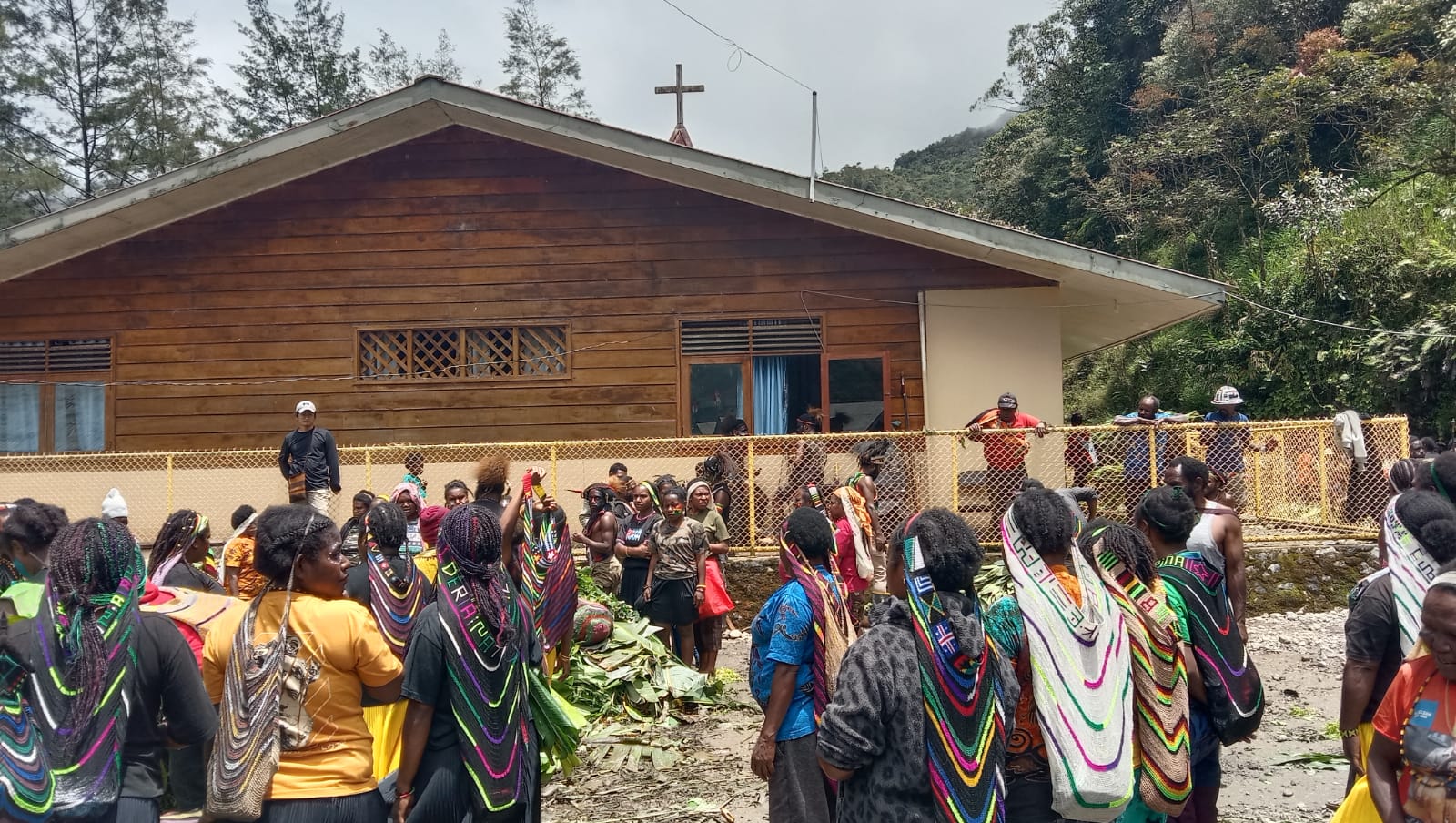 TIMIKA – Guna terus meningkatkan hubungan baik serta memperkokoh kemanunggalan, Danramil 1710-04/Tembagapura Kapten Chb Eliazar Manuk Allo bersama 2 orang anggota menghadiri acara adat Bakar Batu dalam rangka syukuran dimulainya renovasi Gereja Kingmi Banti 2, sembari melaksanakan komunikasi sosial (komsos) bersama tokoh agama dan masyarakat di wilayah binaan Kampung Banti II Distrik Tembagapura, Kabupaten Mimika, Sabtu (16/9/2023).