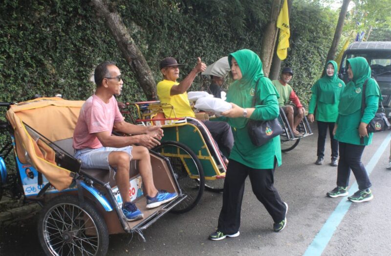 Suasana hangat tercipta saat anggota Persit berbaur dan bukan hanya menyerahkan bantuan, tetapi juga berbincang ringan dengan para tukang becak, menanyakan kabar, kondisi keluarga, hingga situasi pendapatan akhir-akhir ini.