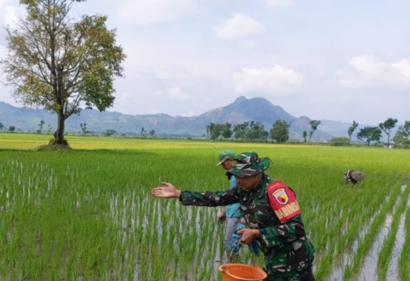 Tulungagung, – Mengenakan loreng kebanggaan, kaki berlumpur, dan tangan penuh pupuk, Serka Aris W tak tampak seperti prajurit biasa. Di Kelurahan Bago, Kecamatan Tulungagung, Babinsa dari Koramil Tipe B 0807/01 Tulungagung ini dikenal sebagai sosok yang aktif membantu para petani.