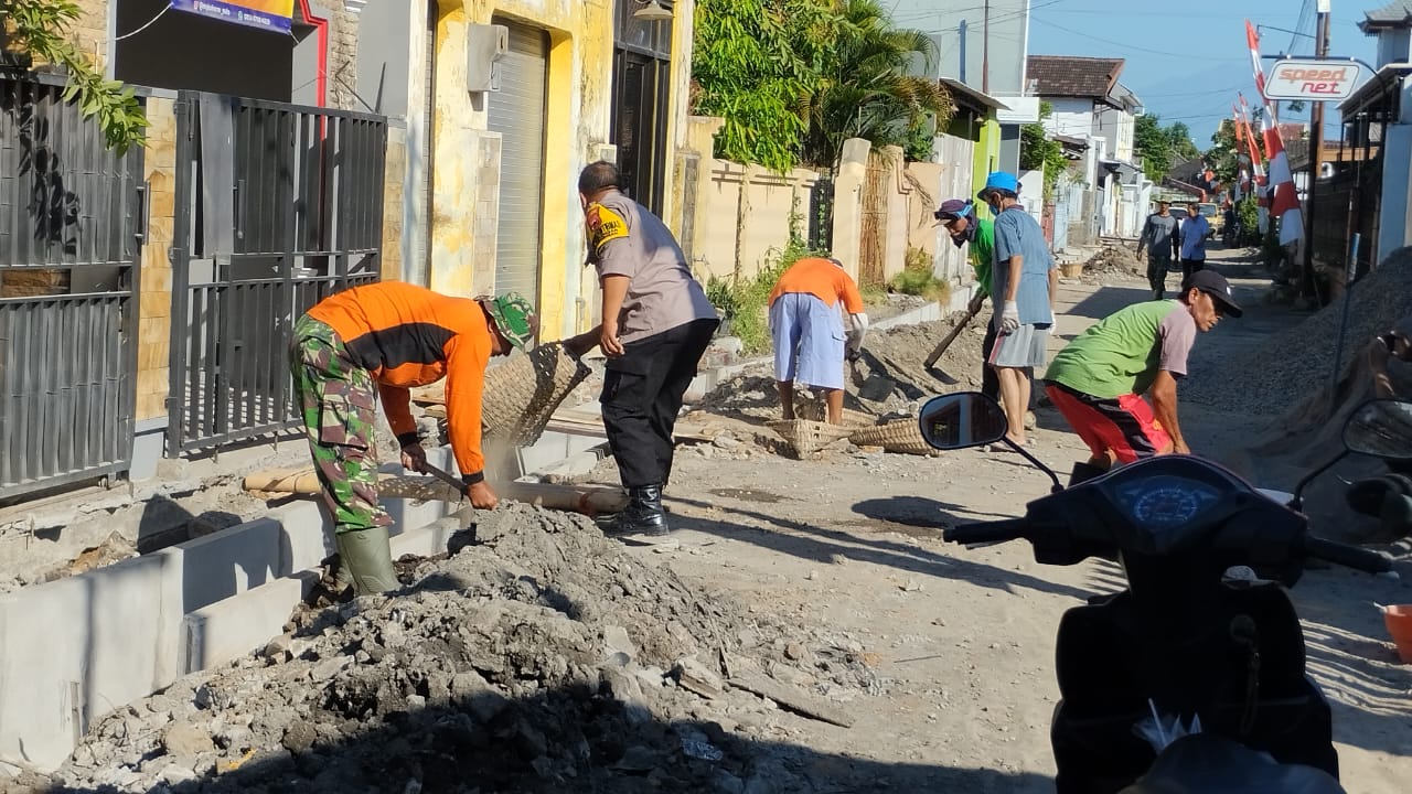 Hal tersebut seperti tampak pada personil TNI dan Polri yang berbaur dengan masyarakat melaksanakan kerja bakti di TMMD Kelurahan Serengan.